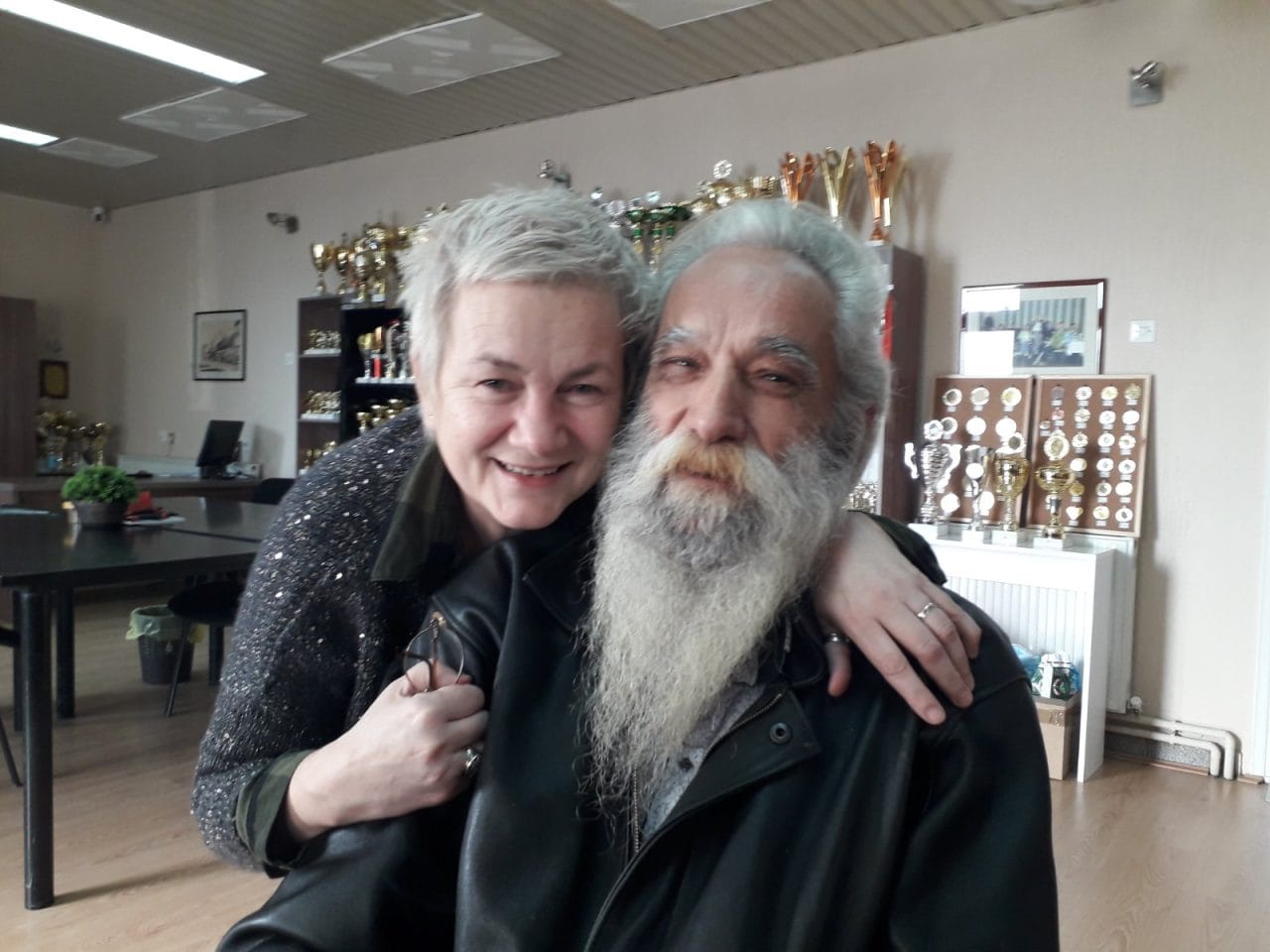 Vladan i Verica ispred panoa zaslužnih građana OSI koje su menjale Srbiju